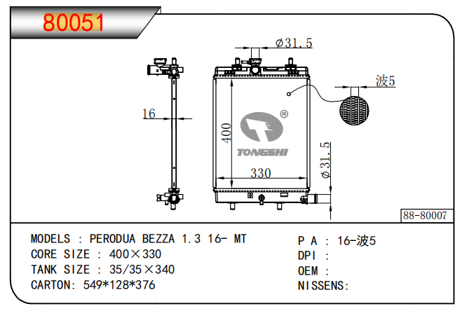 适用于宝马E30 320 i 82-93 AT散热器