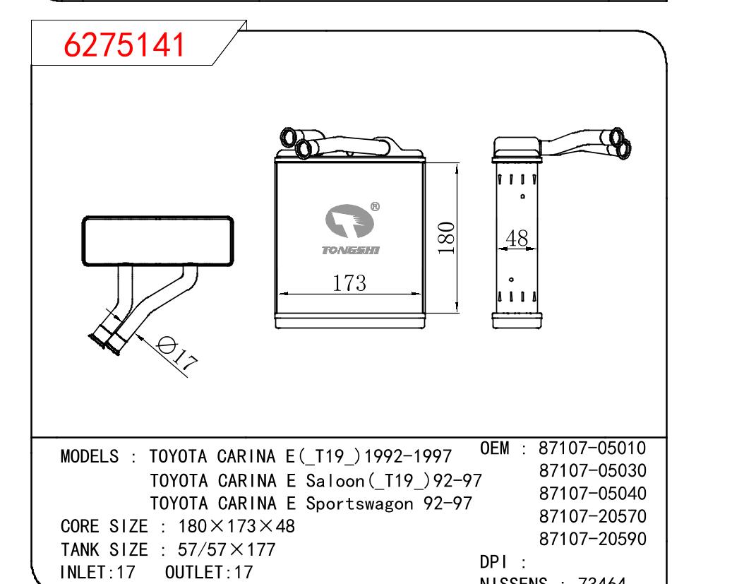 适用于丰田卡瑞那 E(_T19_)1992-1997/Saloon(_T19_)92-97/Sportswagon 92-97暖风 OEM:87107-05010/87107-05030