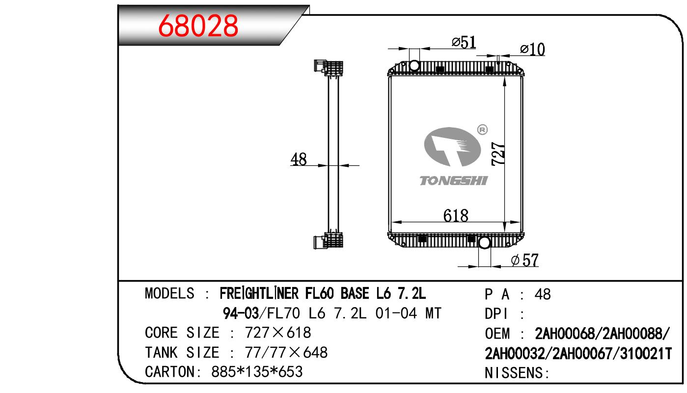 适用于TRUCK FREIGHTLINER FL60 BASE L6 7.2L/CLASSIC 120 L6 14.6L OEM:2AH00068/2AH00088/2AH00032/2AH00067/310021T/1AH00068S