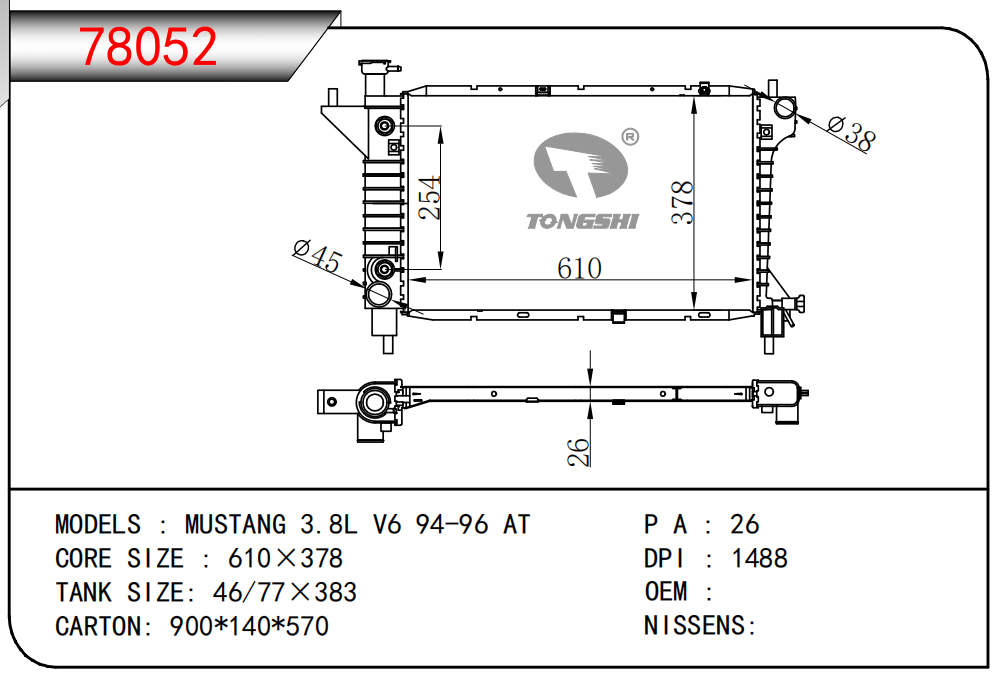 适用于沃尔沃V40 1.9TD D4192T 95- MT散热器
