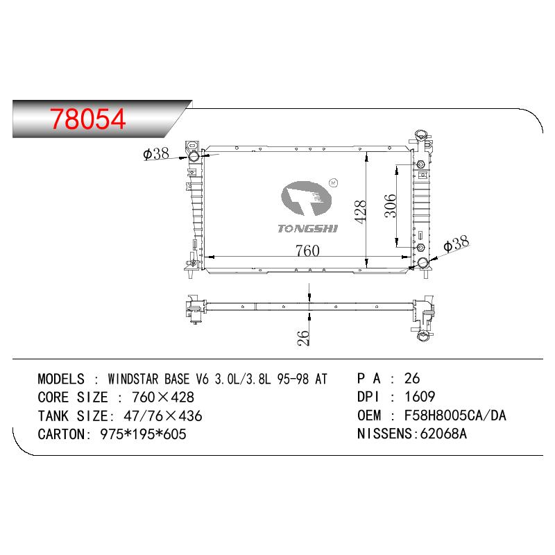 适用于沃尔沃V40 1.9TD D4192T 95- MT散热器