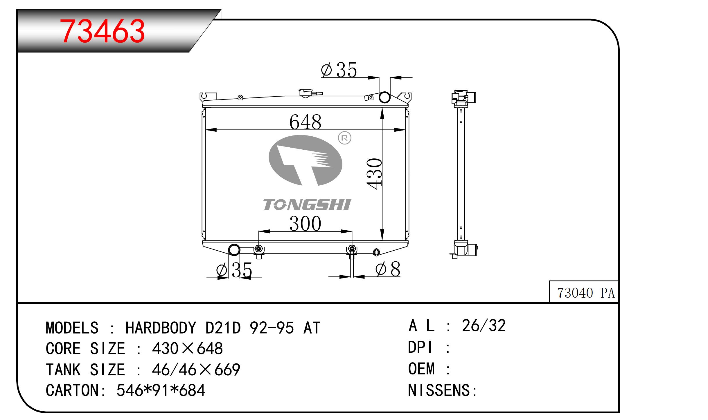 适用于沃尔沃V40 1.9TD D4192T 95- MT散热器