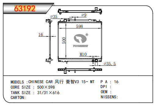适用于沃尔沃V40 1.9TD D4192T 95- MT散热器