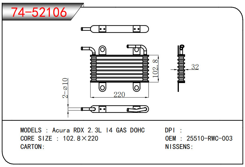 适用于奇瑞瑞虎(新款) MT散热器