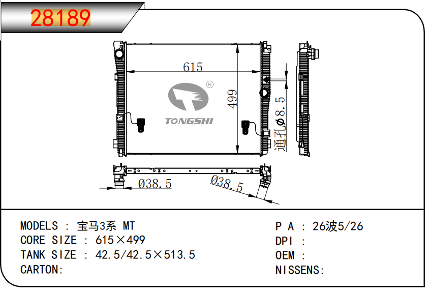 适用于宝马E30 320 i 82-93 AT散热器