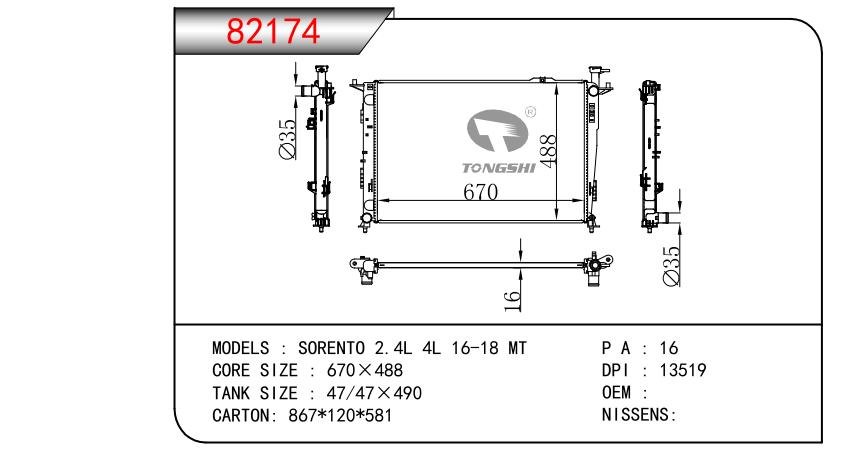 适用于奇瑞瑞虎(新款) MT散热器