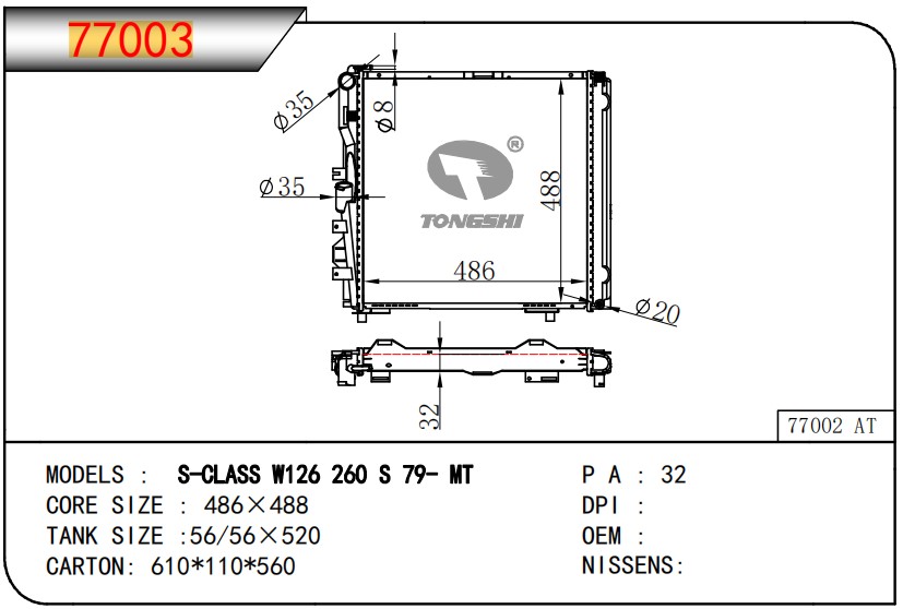 适用于宝马E30 320 i 82-93 AT散热器
