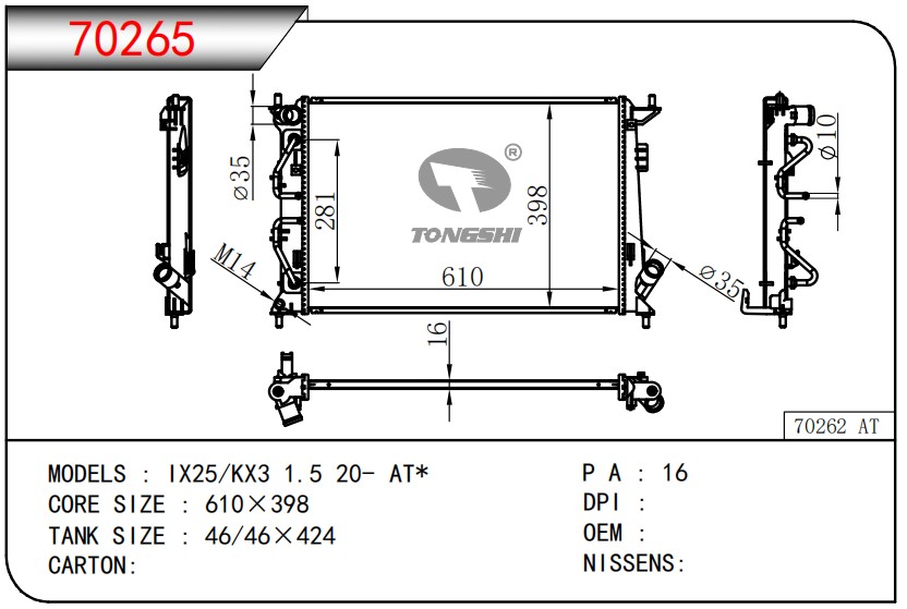 适用于沃尔沃V40 1.9TD D4192T 95- MT散热器