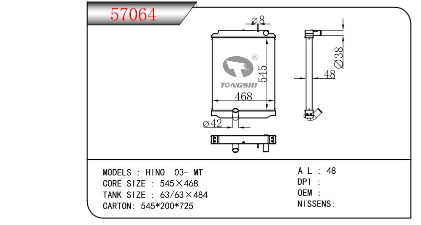 适用于FREIGHTLINER CASCADIA 125/ 113 L6 12.8L 12-13 AT散热器