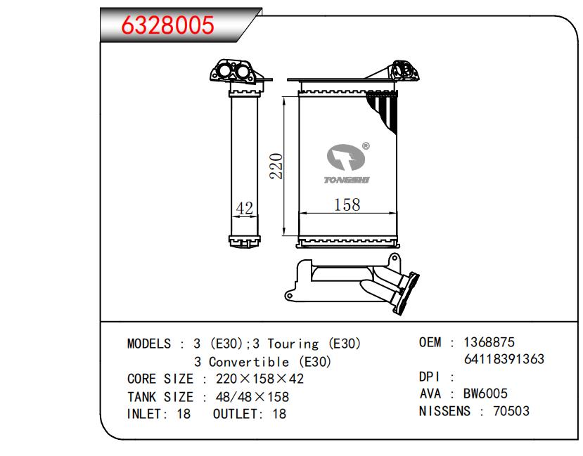 适用于3 (E30) ;3 Tour ing (E30)3 Convertible (E30) OEM:1368875,64118391363