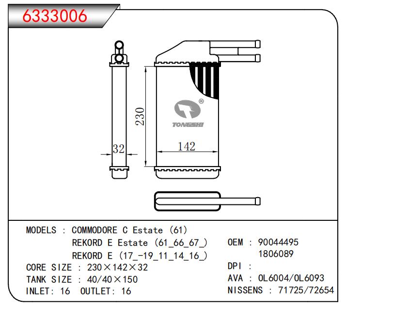 适用于COMMODORE C Estate (61)REKORD E Estate (61_66_67_)REKORD E(17_-19_11_14 16) OEM:90044495,1806089