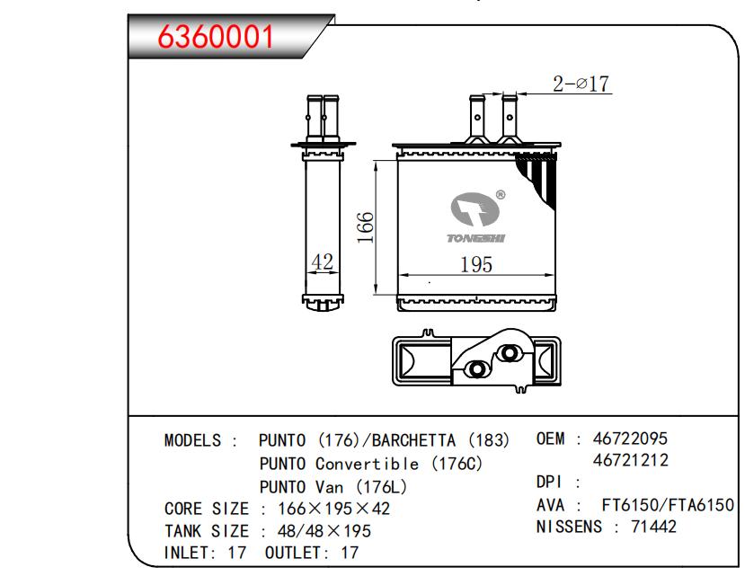 • 适用于PUNTO (176)/BARCHETTA (183)PUNTO Convertible (176C)PUNTO Van (176L)