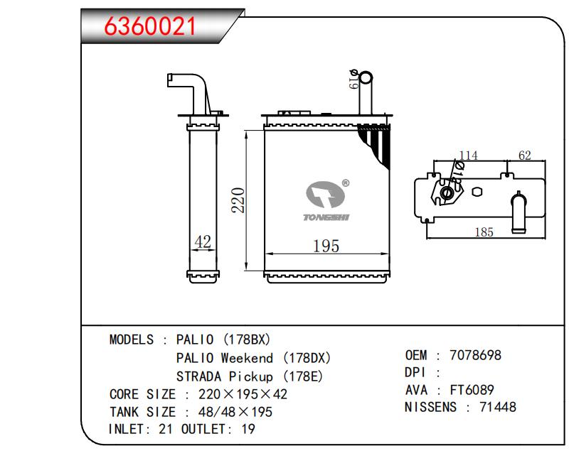 适用于PAL10 (178BX)PAL10 Weekend (178DX)STRADA Pickup (178E) OEM:7078698