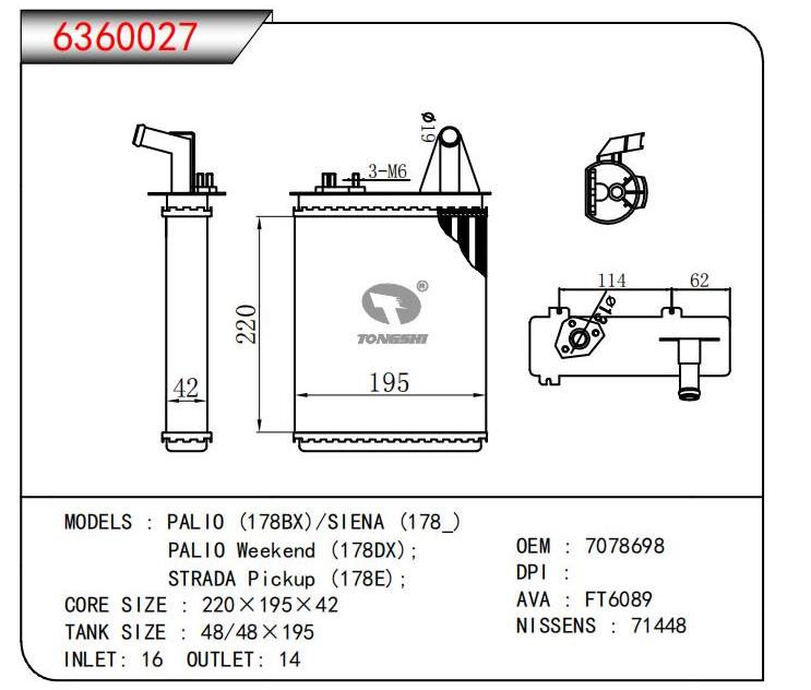适用于PAL10 (178BX)/SIENA (178)PALI0 Weekend (178DX);STRADA Pickup (178E); OEM:7078698