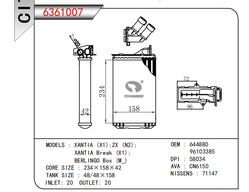适用于XANTIA (X1);ZX (N2) ;XANTIA Break (X1);BERLINGO Box (M-) OEM:644880,96103385