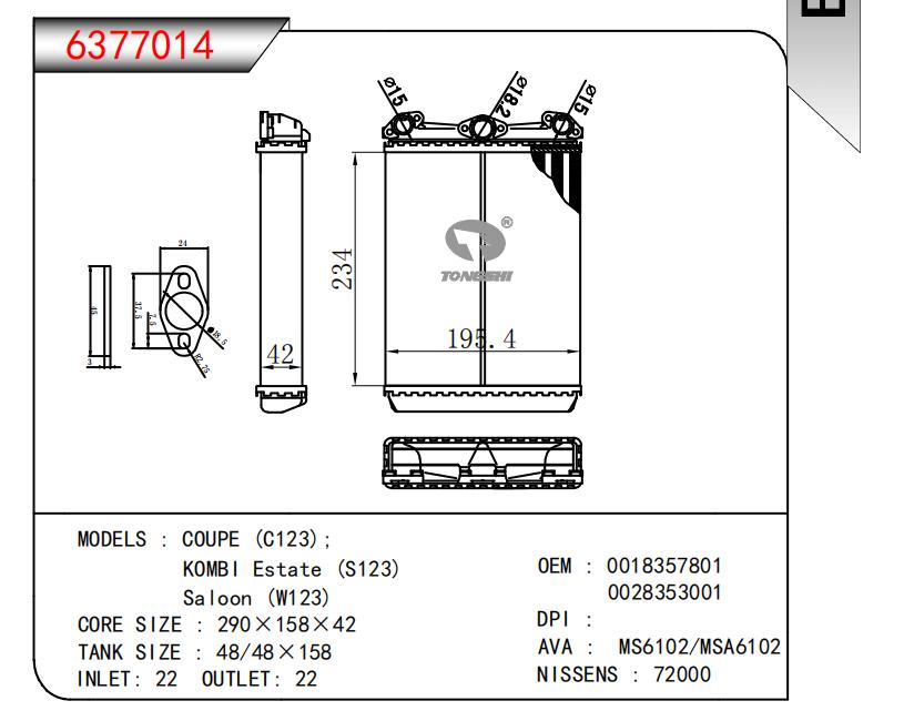 适用于COUPE (C123);KOMBI Estate(Saloon (W123)/(S123) OEM:0018357801,0028353001