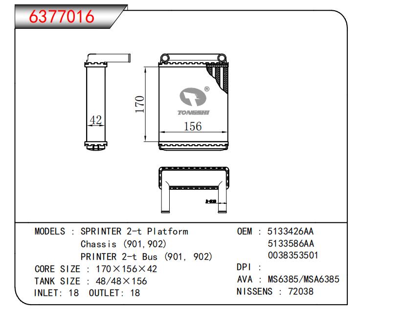 适用于SPRINTER 2-t PlatformChassis (901,902)PRINTER 2-t Bus (901,902) OEM:5133426AA,5133586AA,0038353501