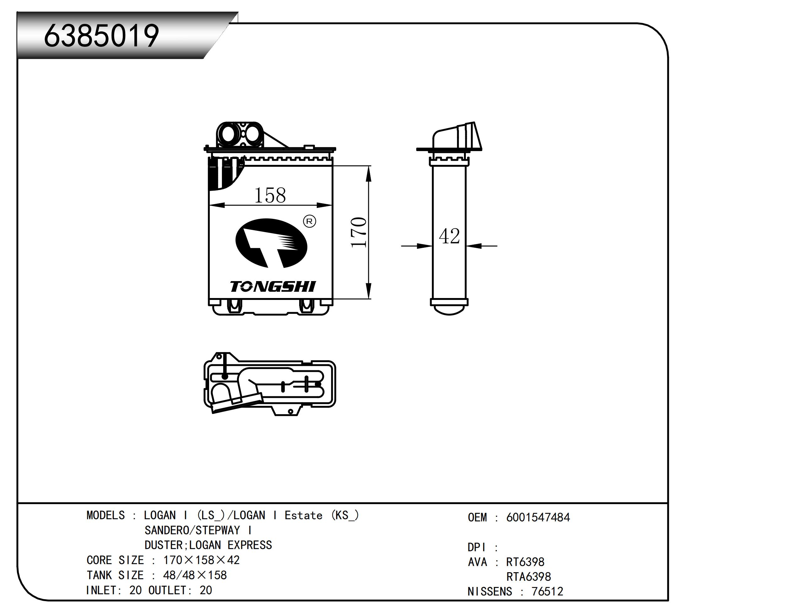 适用于LOGAN I (LS)/LOGAN I Estate (KS )SANDERO/STEPWAY IDUSTER:LOGAN EXPRESS