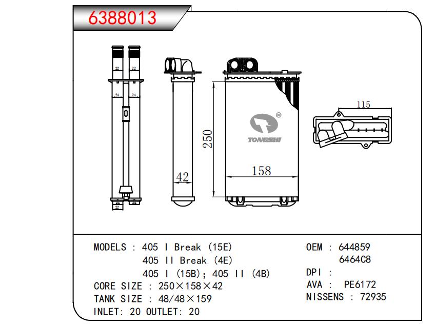 适用于405 I Break (15E)405 I1 Break (4E)405 1 (15B); 405 11 (4B) OEM:644859,646408