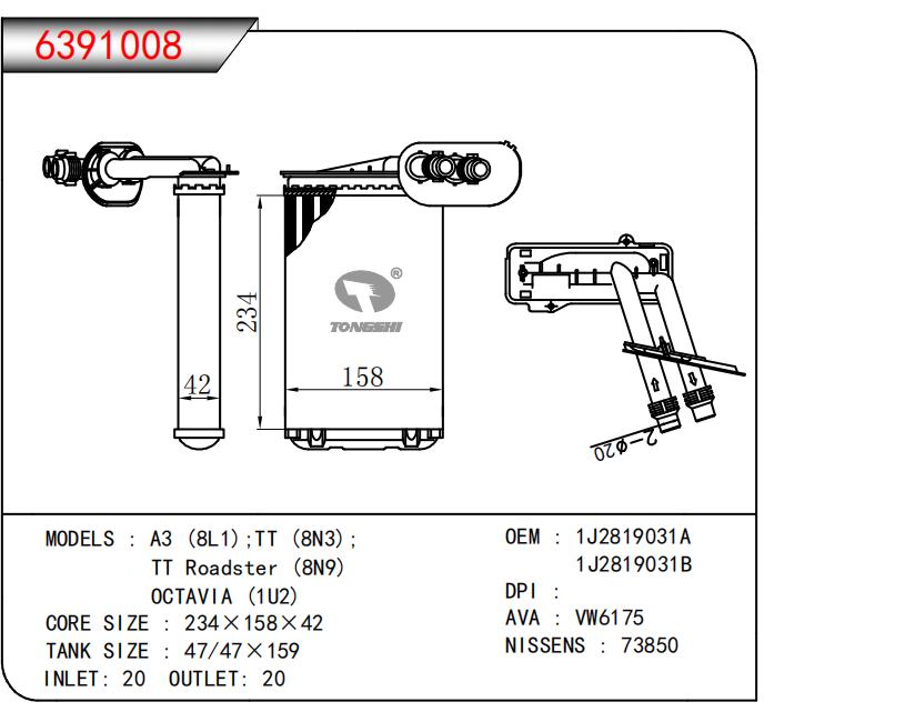 • 适用于A3 (8L1);TT ((8N3):TT Roadster(8N9)OCTAVIA (1U2)
