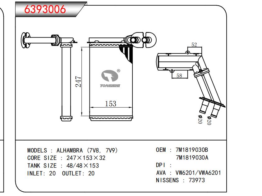 适用于沃尔沃V40 1.9TD D4192T 95- MT散热器