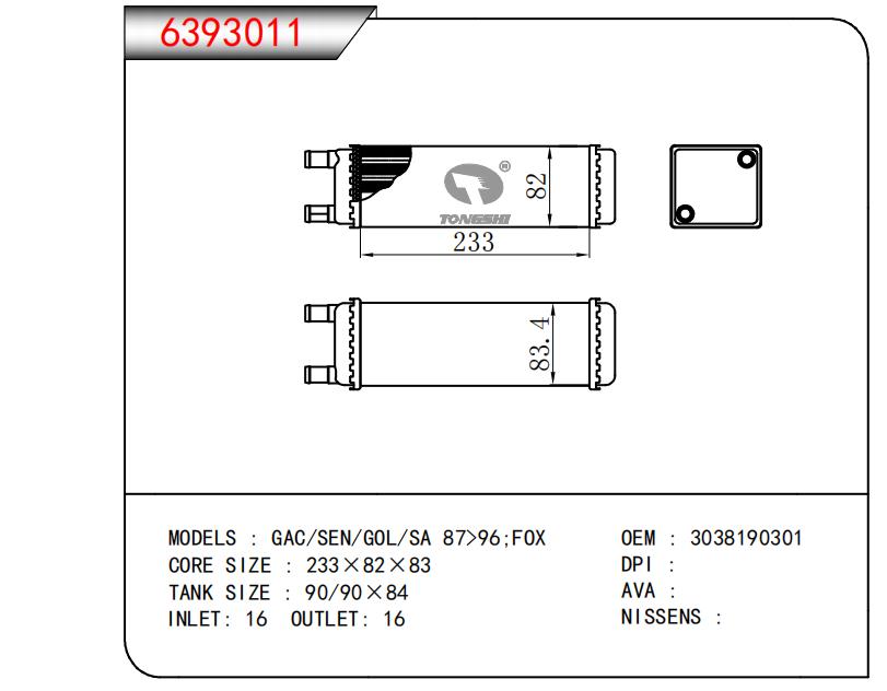 适用于GAC/SEN/GOL/SA 87>96;FOX