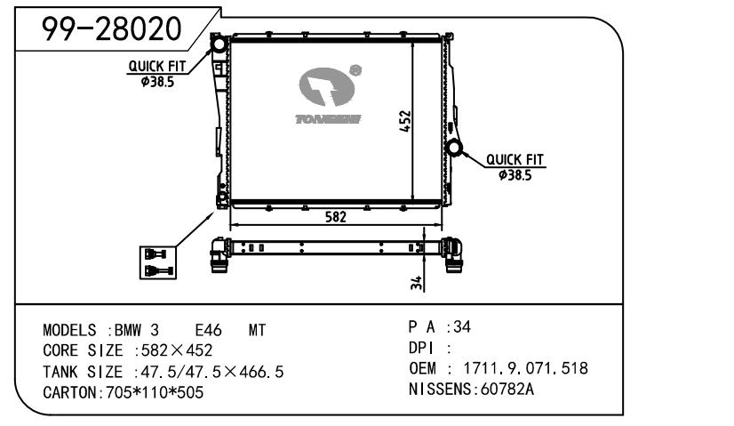 适用于BMW宝马 宝马3E46 OEM:1711.9.071.518/1711.9.071.519/9.071.518/9.071.519/17117513922/7513922/1436242