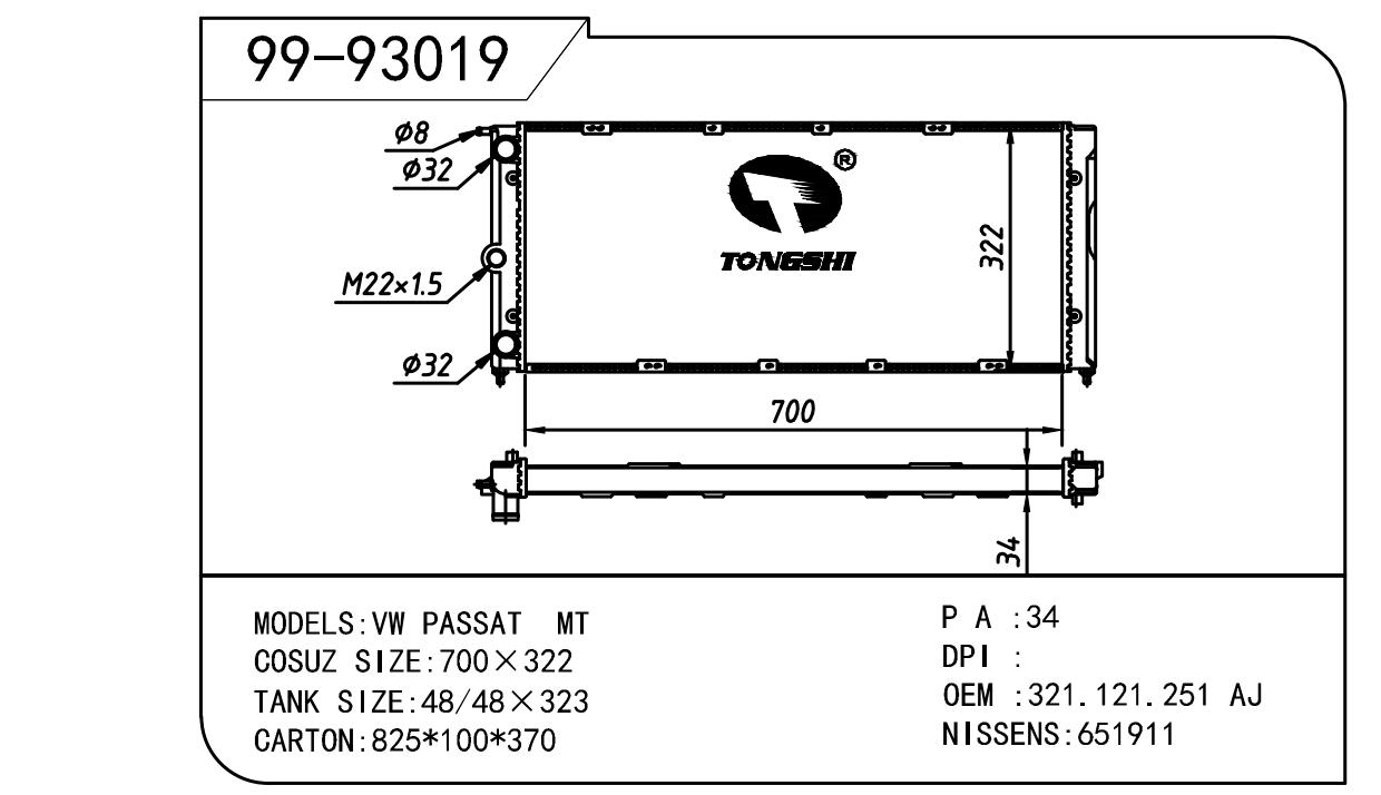 适用于Volkswagen 大众 大众 桑塔纳2000 OEM:321.121.251AJ/321.121.251AL/321.121.251BJ/321.121.253BF/321.121.253BL/321121253L