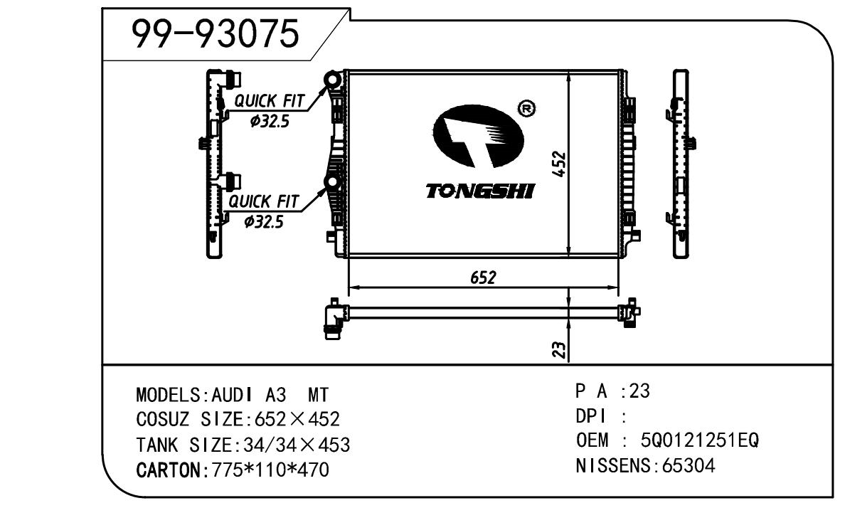 适用于宝马E30 320 i 82-93 AT散热器