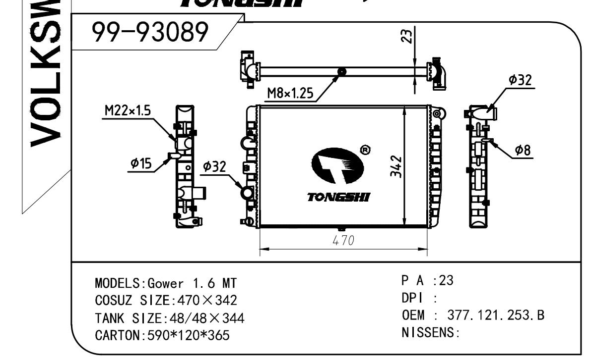 适用于沃尔沃V40 1.9TD D4192T 95- MT散热器