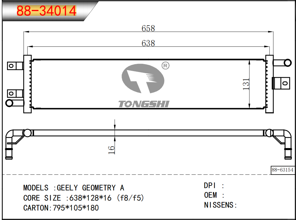适用于沃尔沃V40 1.9TD D4192T 95- MT散热器