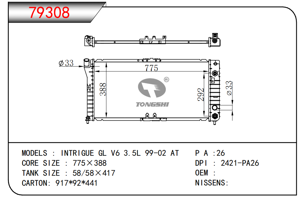适用于沃尔沃V40 1.9TD D4192T 95- MT散热器