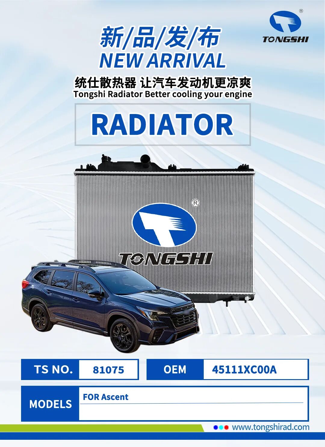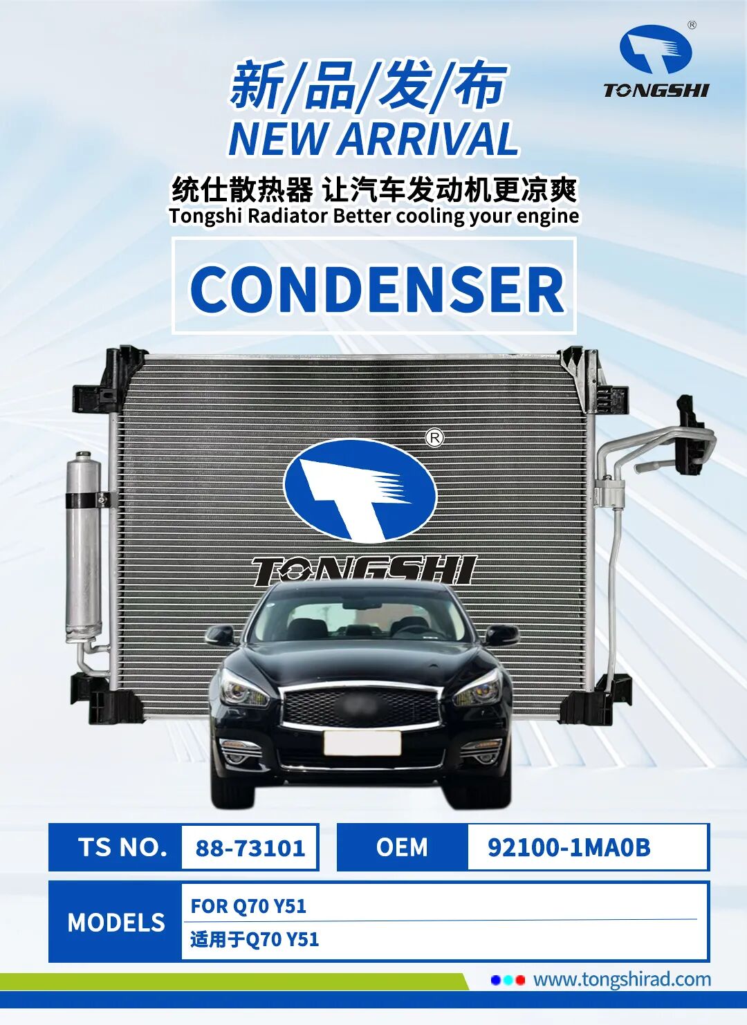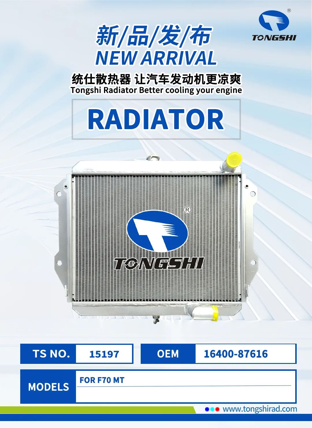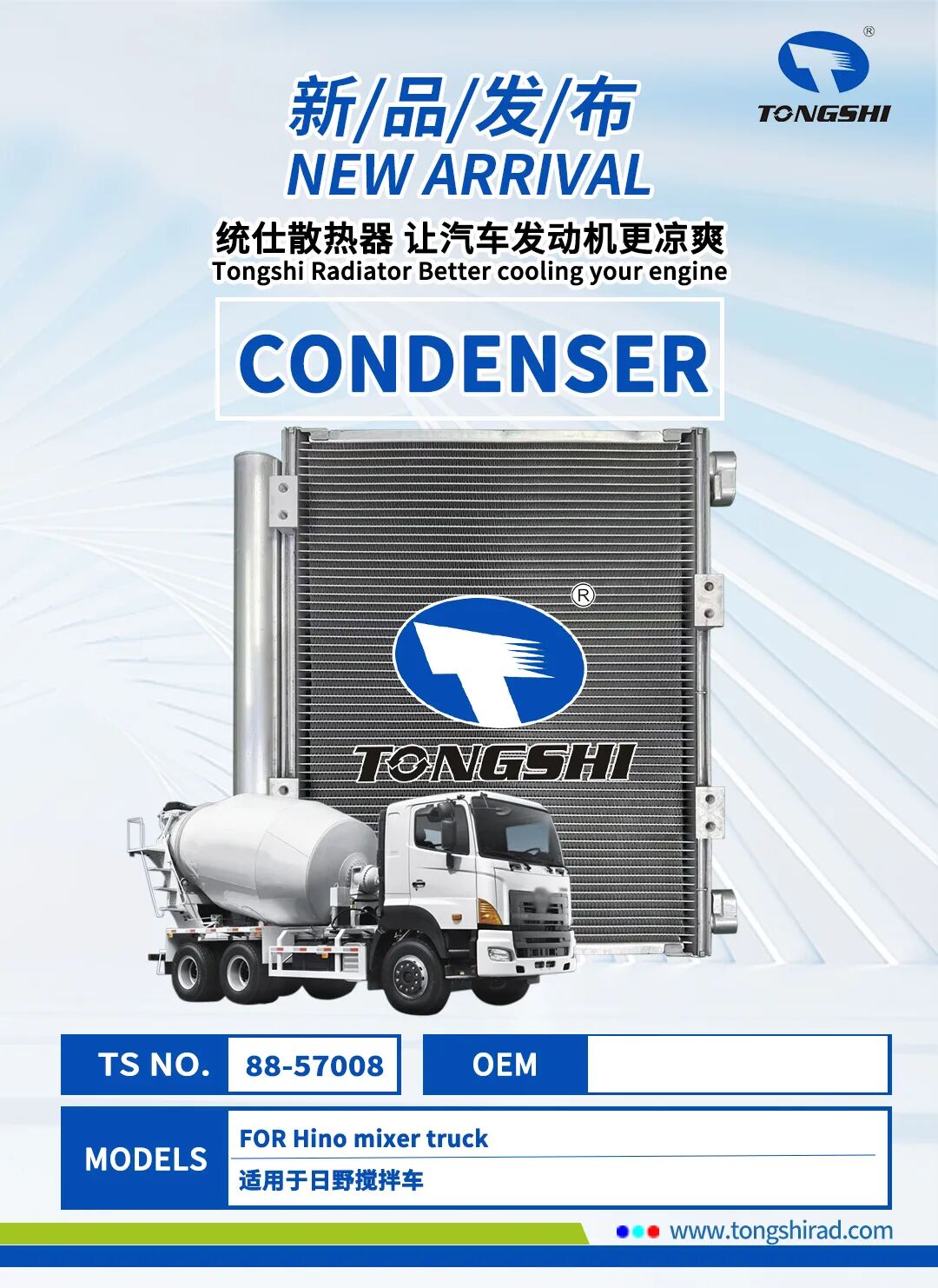 在这金秋十月,鑫统仕集团隆重推出散热器、冷凝器、中冷器、油散等系列产品!此次发布的新品不仅涵盖了汽车、工程车、卡车等多种车型,更以卓越的性能和定制化的服务,满足您对不同车型的散热需求。