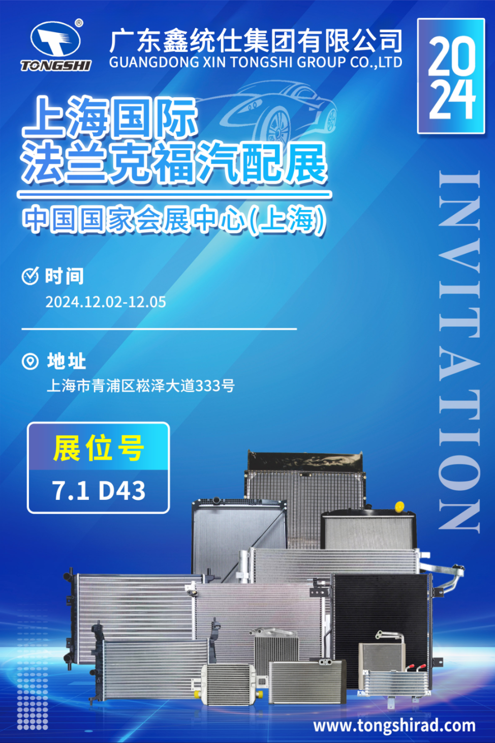 在这个充满变革与创新的时代,汽车配件行业正以前所未有的速度蓬勃发展,新技术、新产品层出不穷,为整个行业注入了新的活力与机遇。为此,我们诚挚地邀请您参加即将于2024年12月2日至5日在国家会展中心(上海)举办的2024上海法兰克福汽配展,并莅临鑫统仕集团展位,共同探索汽车行业的未来发展之路。