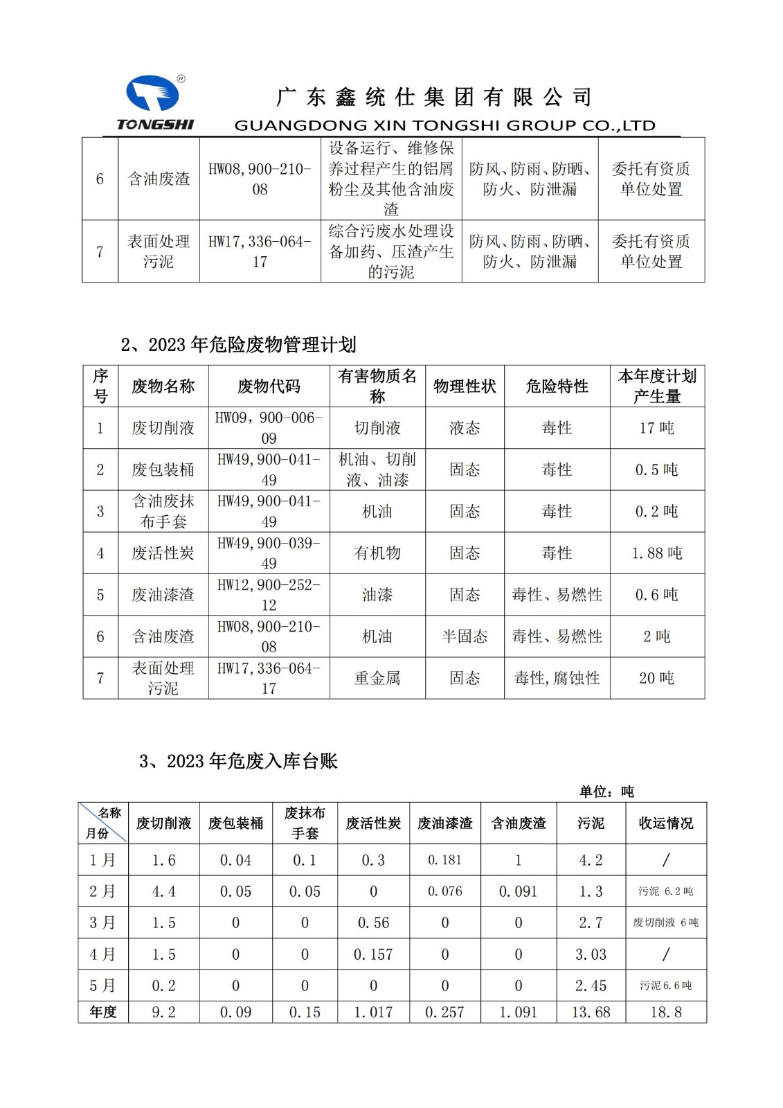 2023年4月危险废物污染环境防治信息公开